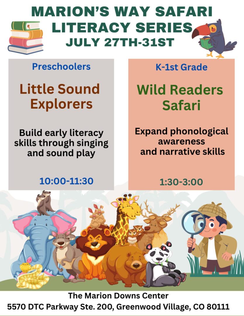 Young adventurers will explore the jungle through songs, stories, and playful listening activities designed to build early literacy skills. Children will sing animal songs, move like jungle creatures, explore letters the sounds of speech, and participate in interactive story activities that encourage vocabulary growth and language development.